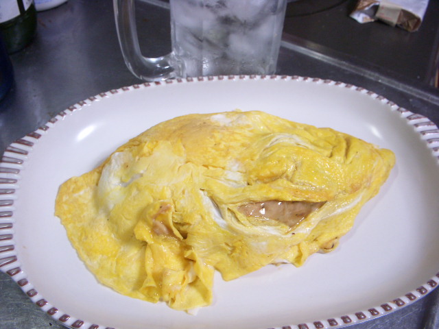 わたくしは、あの晴天がこのような曇り空になってくることは、雨雲レーダーで予測しとりますた。遠方より来客来たるでもって、6時の交流館上がりの後、木倉町でお酒でもタイムにセットしたので、帰る頃は土砂降りと読んでおりんす。なので、明日から2日の東京行もあり、自転車は事務所で二泊の予定。えぇそうなんです。会議やNPO法制定15周年記念行事。そして大崎の常宿で宿泊しての翌日は会議が二本。最終便でお戻りになりまする。そんなんでちょいと時短はお休みでありんすえ~。ではお写真です。これは「オムレツ」なんであります。