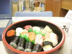 今日は一般的に御用納めの日なのでありまして、午前中i-ねっとではリニュアルしたこのWebの一週間点検をドクター鯉野さんがおいでになって行われますた。昨日完成のチラシ2種も修正、補足が済み、バタバタと御用納めの市役所へ。なんでもこの日と御用始めは庁内各課が競ってのお弁当をいただく風習で、今年は写真の「にぎり寿司」でありますた。きっと県庁もまちなかにあった頃は、近隣の飲食店さんはさぞかし大賑わいの年末、年始だったことでしょう。役所の地域貢献は昔からこんな風に続いているのですなぁ~。山ほどの役人を追い出したまちなかは今、細々と市役所が踏ん張ってるって感じです。そんなまちなか最後の市民・県民交流施設である「生涯学習センター」存続のための署名活動が今、行われています。物言わぬ金沢市民も、やっと立ち上がりますた。まだ書き込み途中ですが、このWebからも署名用紙がダウンロードできます。一番下ですよ。是非石川県内のお客様、署名にご協力くださいませ。明日は、メールアドレスの変更を全国のみなさまも含め、配信する予定であるまじろぉぉぉ~!!