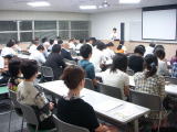 むしむし中のしょぼしょぼ雨で、やっとこ予定が平常にもどりつつの今日この頃。来客もあり~の一日事務局。月末からi-ねっと事務所に仲間が入居するので、(今度紹介しますね)先日数人での「大掃除」に続き、そろそろ山の書類崩しに突入だす。窓際一列にそれなりに分類しながら山積みだったものを左から順番に片付けますた。ずっ~と机2本分右まで行って、後二山を残して、今日は終了だす。それから昨日からの一日市役所に新しい仕事が出来ますた。それは、あの「協働劇場DVD版」を手分けして300枚DVD焼きするという作業です。セカンドパソコンはWindows7なので、9分で1枚上がりますが、提供されているvistaは、まだ書き込み用DVDを認識してくれましぇん。こっちが動くと助かるんじゃがいも~。又、とうとう石川県から事業がおいでました。幸いに来週も平常体制なので、なんとか理力と知力で、この危機を突破千枚田!!写真は5日近江町交流プラザでの「チャレンジ事業受託団体のための協働セミナー」風景だす。17団体、関係者も含め60名ほどで、終わった後のみなさんの名刺交換交流は、それはそれはすさまじい熱気で、嬉しい悲鳴の雄叫びざんしたぁぁぁ~。