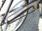 まったくもって先週と同じ状況ですた。すなわち内灘町へ市役所からバス、浅電と乗り継いで出かけたので、遅い帰りは駅から直行で自宅バス帰路。んなもんだから、市役所一泊の自転車置き場まで約15分の徒歩ざんす。朝からチリチリの日照りの中、15分と言えども、途中で熱中症で果てたらいかん!というので密かに仕込んだ「シャツクール!!」。こいつをシャツにスプレーするだけで、汗をかく度にひんやり持続。。。とか。って、これがひんやり?なんかメントーレのお薬塗ったみたいなぁ~。ひんやりより、ヒリヒリ~って感じ~。塗ってない額からはじんわり汗が出ても、シャツはぐじょぐじょ感がないので、まぁ~成功?すかす、駐輪場に着くまでの持続力では、すぐに赤ランプが点滅するウルトラマンじゃい!!さて、写真ですが、連休中は愛車をご紹介しまする。まずは動力部です。ご覧ください、チェーンではなくベルトざんすぅぅ!!