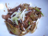 ゆるゆる出勤で午前中、「FMかほく」を一発録音して、木倉町の広場で「ふうりん祭り」って~のやってるってんで、お昼を食べにぶ~らぶら。。いたいた市役所の市民参画課は金沢まちづくり学生会議担当の職員さんたちに、元気な学生が「焼きそば屋」。地域の人たちと一緒に祭りを盛り上げ中。それにしても近頃はユーストリームで実況中継。ハイテク学生沢山で、焼きそば、昔ながらのカレーパンをビールで流して事務所に戻り、8月計画つくったりで、いよいよ本番。5時から我が校下恒例の、犀川河川敷での「夏祭り&納涼盆踊り大会」。昨年に続いての司会担当なもんで、そろそろ戻ろうかいな。今日と明日は金沢市内、あっちやこっちでお祭りだい!!てぇな訳で、写真は「なすと豚肉の味噌炒め」。