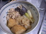 わたし達の町会連合会で50周年の記念誌を出すというので、先日女性町会長さん達との座談会をしました。司会を務めたのですが、元気の良い方々だったので、ノリノリの雰囲気で盛り上がりました。記念誌に掲載する座談会の原稿が校正で届きました。読んでみたらば超過激発言だらけ!(私だけではありませんよぉぉ〜)これでは、32町会長さんドン引きに違いありません。こういう改革運動は共感がとても大切。という訳で、4枚一日がかりで書き直すましたぁ〜!!写真は、残った「牛すじ肉煮込み」の汁を使って、厚揚げ、しいたけ、糸こん、ねぎ、豚肉を煮てみました。激うまぁぁ〜\(~o~)/。