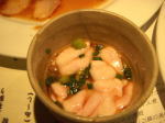 昨日は力つきて町会の仕事だけして、後はソファーでうとうとしとりますた!どんな町会の仕事かというと、近所の神社の「お札」注文を取りまとめ、受け取った2種類約100枚を班ごとの注文数にに分けて角封筒に入れます。さらに注文枚数に単価をかけた売上額を書いた紙を貼ります。それを10班分持って、班長さん宅に配布するのです。日曜の昼食時「ピンポ−ン!」という訳ですが、10軒とも人がお家にいてはりますた!そうなんですね。普通は。。。休日も外でお仕事があたりまえの支援センタ−は、普通じゃないの?って感じぃぃ。これって、1割の手数料が町会の財源になるのであります。宗教分離の考え方で見ると「お札」は回覧希望で行うものなので強制ではないのですが、ほとんどの家庭は購入を希望しますし、神社の差義長では古い「お札」を焼く訳で、新しい年をこうして迎えるのです。あぁニッポンチャチャチャ!!写真は土曜の「反省・忘年会」の極め付き「白子酢」であります。他にも香箱カニなど沢山出て、あの主計町(東茶屋)にして食事だけでたったの3千円です〜!!もちろん、たらふく飲んだ分は。。。。(-_-;)