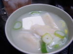 _)>)。結果、パワポはCDに焼いて明日早朝、市役所に届けることにしました。さて、昨晩は「冷凍餃子」です!国産が冷蔵庫にですぅ!しかも白湯(パイタン)スープに豆腐とねぎを加えた「スープ餃子」す。なんでも中国語で「湯」はスープのことだそうです。留学した学生が「銭湯」の看板を見て「大規模なスープ専門店がある」と言ったとか。だからなんだって訳ではないですが、お鍋から出た写真です。い〜い湯だな〜♪