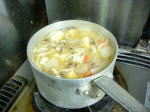 ちよっと大変なことになってきました。午前中「NPOの会計」について依頼レクチャーの後、じっくり予定表とにらめっこしたらば、連絡のあった富山での「協働シンポ」の後のスケジュールが、一週間しっかり、かっつまってました。あわてて26日の七尾・鹿島地域ボランティア交流会の準備。そして途中までだった「POの解散手続き」原稿の仕上げ。その他、昼の会議などもあって、27日、28日の金沢市職員研修用パワポ修正と原稿づくりの時間が、ありゃ!どこにあるぅ?です。そんな訳でさっさと、夕食のご紹介。土曜にたっぷり作ると、日曜のお昼に重宝な、なんてことはない「豚汁」でシッツ礼〜!
