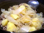 5月は総会ラッシュ!i−ねっとは21日です。毎年恒例、連休の大きな仕事ですが、理事就任、退任があり、顧問・相談役様がいらっしゃって、理事会と総会が一緒なので正会員も理事と2種類。それに次年度継続をお願いする賛助会員さん。合計で80名を超えます。(そんだけ〜なんて言わないでぇ〜♪)それがジグソーパズルのように中身違いなので、慣れたとはいえ、時間のない昨今ハードな作 業となります。会場がまだ未定なもので2回に分けての袋詰めか!結局、一部を除き各種書類プリントまで到達し、明日はプリントとタック、袋詰め第1回目を予定して、本日はこれにて!またまた連貼り。「ポトフ」です。ベーコンブロックを一口大に切り、スパイス効かせて、一気にファイヤー。それを、じゃがいも、マッシュルーム、玉ねぎ、などと一緒にポトポトとビーフコンソメで煮ます。(チキンが無くてビーフ味になりました。)赤ワインも少々入れて濃くを出して完成です。ガーリックパンと500円の赤ワインでいただきました〜!(^^)!