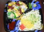 朝一で、現在色校正中の県事業のチラシを東さんとパソコンでチェック。その後10時30分からエクセルホテル東急で開催される「市政連絡会」なるものにお呼ばれで出席しました。これは市内62の町会連合会長に対して、金沢市10ケの担当部局から各部局3分ほどの施策の説明をするもので、山出市長さんの挨拶もありました。「協働をすすめる」視点から金沢市の重点施策を伺うと、また発見もあり、とても勉強になりました。(こんなことやってたんですねぇ〜)お昼の高級弁当(どこの予算だぁ?)を頂いてから事務所に戻り、東さんが持参してくれた色校チラシを「あいむ」へ届けて、2時から市役所で相談業務。今日は立て続けに相談が3件もありました。弁当と言えば、最近デパ地下弁当にはまってます。600円代でいろいろ。これは「冷やしうどんう&海鮮丼」でございます〜。