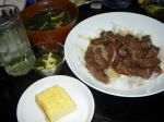 「連休中に!」と仕事を増やしつつ、差し迫る連休を前に、いささか気の思い今日この頃。4月分のとっ散らかし事務所救済活動の一日。といっても11時すぎから協働をすすめる市民会議の「協働センター検討チーム」5人の初会合に、コーディネーターと市役所から各2名で9名の参加。戻ってから予約の相談者が見えて、夕方からの続行です。まぁこんなもんですが、掃き掃除は間に合わず、明日に持ち越しです。パイプ椅子を机に上げたので、明 日は寝ぼけてても掃除から開始出来るでしょう。午後は市役所なので、早朝出勤が理想ですなぁ〜。写真は昨晩作った「やわらかビーフステッキ」。フアィヤーしてから、オニオンスライスの上に乗せました。市販の厚焼き卵。頂戴したタケノコを使った「タケノコとわかめのお吸い物」などと一緒に召し上がりました。5月しょっぱな連貼りですいやせん<(_