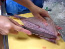 かくして午前10時なんとかプロ・ディザイナーさんに素材を渡せました。「NPOニュース」欄でご紹介で〜す。そしていよいよ総会資料づくりに突入!今日は事業報告に時間を食いました。後半分に、会員や収支グラフもあります。明日1日で印刷まで不安になってきました(>_<)。そんな訳で昨日予告した「マダイ」料理のプロセスを連貼りでご紹介。左から@エコクッキングのプロがさばきます。中に卵が。これは後で使います。Aまずは3枚におろします。B取れた身に熱湯をすばやくかけると皮が縮む!。C氷水でしめます。