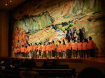 昨日の日曜は朝8時からの、市内中学校文化部の合同発表会「夢空間2007」でした。9時30分の本番前に、舞台担当スタッフ「YJS」の最終チェックなどして、本番を迎えました。一度に3つの場面展開もスムーズに行き、満席の中学生を中心とした観客も最後まで集中したステージ発表と観劇を楽しむことができました。関わって3年。やっと普通に舞台鑑賞のできるイベントになったように思います。担当の先生方のご苦労があったからこそです。写真はスタッフの子ども達の自己紹介のシーン。2分で全員をやってしまいます。さて今日は、石川高専最終回で3年生200人へ、午後から「楽しくやろうボランティア」の授業。午前中、前回を反省し、組み立て直したかいあって、こちらも楽しい反応で、良い時間を過ごさせていただきました。