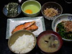 今とても困っています。今朝パソコンをあけたらウィルスバスター2007から右下に赤枠の「警告・ウィルスが見つかりました」が出て、そいつが今でも続いているのです。ウィルス検索やらいろいろ調べた結果、「スパイウェア/グレイウェア」というもので感染度は低、昨日の夕方に進入した模様。感染ファイル名は「kbdfi2.dll」35KB、マイクロソフト製のアプリケーション拡張ファイルまで突き止めました。「隔離できませんでした。不要なファイルであることを確認し、手動で削除してください」の指示通り、これを削除すれば問題解決なさそうですが、なんでも「コンピューターの大事な機能」とか「削除できません」と出てきます。八方ふさがりで、警告表示が邪魔で仕事になりません。これだけの情報で、どなたかアドバイスくださいますででしょうか?(-_-;)「警告表示を消す」にしても、まだ出てきます!本当に削除して大丈夫なファイルなのでしょうか?さて、気分を変えて、日曜の夕食です。なんとなく日本の朝食に挑戦したくなって、のり、生卵、ひきわり納豆、塩鮭、ほうれん草のおひたし、しじみの味噌汁にごはんです。ホテルの朝食バイキングでも、これだけは揃いませんぞぉ!これから6時すぎのJRに乗って、今日は小松社協さんの「団塊世代ボランティア講座」に出かけます。