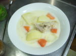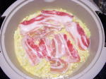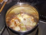 _)> さて、久々のお料理は「ロールキャベツ」。冷凍物ですが、ベーコンと一緒に玉ねぎスープとコンソメのスープをあわせ、コトコト時間をかけて煮ます。保温器で蒸らすと、一層やわらかさを増します。