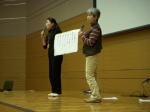 昨日午後から地場産で、石川県が主催するNPO関連では初めてのイベントがありました。ランナーとしてご高名な方の講演とあって、現役陸上部の高校生など、お目当ては講師!という参加者も多く、動員数としては大成功といえます。有森裕子さんのランナーからNGO活動へ至る、ごく普通のお話は、一般の人にもとても分かりやすいものでした。で、そのお話を聞いた人たちが、周囲に出店したNPOブースに出向き、質問などするかと思えば、それとこれとは別!ということがあまりに明確な人の流れ。いろいろと考えさせられた一日でした。写真はNPO団体紹介で自称・二人劇団のNPO法人「志・ネット・石川」さんの怪演です。この日のために、台本を書かれた馬力には、脱帽であります。