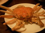 なんとか先月末締切りの「NPOニュース」原稿は午前中に終わり、午後から10日締切りの取材原稿2本に入りました。インタビュー相手のセリフと執筆者の印象を組み合わせるのに技術が入ります。「地域創造」という冊子で活躍されているノンフィクション作家・神山之典士さんの文体が好きで、気がつけばそんな感じ。でもこちらはヒヨコです。否、まだ卵であります。残り1本は明日にして、そろそろ夕方のバスに乗って富樫教育プラザで会議です。あぁ〜明るいうちにお家にかえりたぃ(-_-;)。そんな訳で今日は2日のフォーラム終了後、ゲストの方々との「懇親会」で出てきたコウバコガニです。半分食べた後なので、撮影用にツメを入れちゃいました。十一屋の町屋風料亭風味のお店で、なかなか金沢味が堪能でございました。