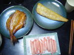 今日は7時30分からNHK総合で能登半島地震の特集があるそうです。メールで現地へ応援を募集していたので、昨日見た復興の夢を書いて送りました。訪問相談が午前中に1件。この頃いろんなソフトであわててパソコンをいじってたせいか、立ち上がりや切り替えがもたつくのでディスクのクリーンアップをしました。寸断された赤い線が沢山出てきてお掃除に時間が取られました。その間に机回りもお掃除です。パソコン共々クリーンになったところで、次年度のキャシュフローが完成\(~o~)/。総務担当理事へ報告。続いて決算!と思いきや、またまたこんな時間。7時半からのテレビを見るので、少し早く帰りますです。冷凍庫の余り物を昨晩は掃除しました。赤魚(左)とほっけ(右)の干物をあぶって、蟹身(下)にからしマヨネーズ。この蟹身はなんとかまぼこでっせ!よくできてますぅ!