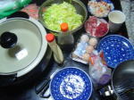 _)>。翌19日(木)午後3時には戻っていますので、よろしくお願いします。写真は先日土曜の「お好み焼き」。鍋を温めている所です。つくりながら食べるので、テーブルがかちゃかちゃであります。