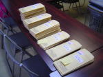 かくして約140通、6種類の内容物が異なった発送の準備は、糊付けを残すだけとなりました。(写真)「早く送ってよ〜」と、まだ空いている封筒から声が聞こえそうです。(やっぱりゴールデンウィークに食い込んでますぅ〜(-_-;))震災情報チェックをしていたら毎日新聞の北海道版で「酒蔵復興基金」の記事が出ていました。発案者が提案し、速キャンペーンをはじめてから1ヶ月近く。地味ではありますが、少しずつ動いているように感じます。新聞論調にも少しずつ「過疎地の復興」に関する問いが出てきました。これらについては「記者の目」としてまとめることにしました。義援金による復旧から、これからの復興は次の大きな課題です。将来に渡る「基金」活動と、「まちづくり」のビジョンが求められるのだと思います。古い仲間達が「復興のための慈善公演」を計画しています。何をどのように復興したいのか、お金を出す側も考える時期にきたのではないでしょうか。今日の訪問は2件でした。