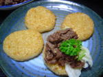 昨晩、時間のない中てんこ盛り会議があって、「後はメールで意見交換を!」ということだったので、午前中にモンモンと考えてしまいました。メーリングリストに意見を載せるのはとても勇気のいることです。発言は聞き流しもできすが、メールは証拠として残るからです。また、誤解が生じたり、真意が伝わらないのもメールのリスクです。でも昼にはなんとか「意見広告」しました。が、その後数本関連のメーリングリストから書き込みが入るのですが・・・。「無視」もまた・・辛いものですね(-_-;)。21日総会の会場費支払い、8月予定事業の会場申請に、暖かな空気を感じながら、自転車でひと回り。こうしてやっとこさ平成18年度事業報告書作成です。途中でご訪問が2件あり、半分の完成となりました。写真は「ライスバーガー」です。冷凍のバーガー用ライスを電子レンジして、レタスを敷きます。みりん、醤油、お酒を同数合わせた「たれ」で牛肉を炒めて乗せます。はい!出来上がり!!(パセリは写真用で〜す。)