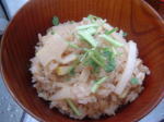 午前中、事務所でちょっと大かがりな取材がありまして、スタッフさんなど総勢5名で賑やかでした。午後にはちょっとくたびれモードでしたが、総会資料の最終チェック。20枚と図表資料4枚で完成の暁を見ました。(?)明日は総会分の印刷を決行するであります。その他出席、委任名簿づくりや、メール処理、明日の相談者への書類づくりでした。今日のアクシデント。電話器がうんともすんとも言わなくなりました。NTTに携帯から電話してあれやこれや・・。やがて工事関係の方2名が見えて「高電圧が来てルーターが壊れた可能性がある」とかで、ルーター交換と設定をしてくれました。はい。光電話なのです。関東方面で「一時、光回線が遮断」のニュースの後だけに、おろおろしちゃぃました。という訳で「竹の子シリーズ」もいよいよ終盤。これを頂かなくては何の竹の子です。根元部分を細切りにして、油抜きしたこれまた細切りうす上げと炊いた「竹の子ご飯」です。米3合に醤油1/4カップ。13日の日曜お昼に2杯もお代りしちまいました。残りは冷凍おにぎりでぇ〜す。