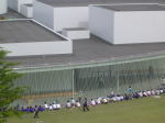 朝、歯医者の帰り、落雷と突風と大雨に遭遇して、えらい目に合いました。でも自転車出勤できました\(~o~)/。昨日は午後から「ゆめまち事業」でずっと外でした。芸術村で打ち合わせた後、市役所の担当者と、庁舎にて次の仕事で落ち合う約束。同時に芸術村で別れて、自転車で移動。10分で到着です。車で向かった担当者は、それからしばらくして到着です。市内の移動は自転車に限りますね。その自転車で現在「2007ECOサイクルプロジェクト」がやられています。4月23日から6月29日の走行時間を記録し、エネルギーに換算して、二酸化炭素削減量を自己申告するイベントです。私も毎日「実践記録シート」に走行時間を記録しています。今日は「ゆめまち・ブラシュアップセミナー」準備と、数々の雑務でした。写真は昨日市役所5階の喫煙室から見た21世紀美術館の風景。なんでも丸い美術館全部を覆う、2000本の朝顔を植えるイベントだそうです。ツルが全部屋根まで届いたら、21美は葉っぱの中です。円周を描く高校生(中学生?)達が、ちよっと圧巻でした。