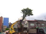 とうとう5月も終わりです。昨日のチラシづくりをやり直しました。予算を組みなおすと白黒での印刷ができそうなので、文字写真モードでコピーしてみました。完璧やったぁ!!てぇな代物にはならず、今夜の「審査員研修会」に持ち込んで意見をもらいませう!思い込み、独りよがりはNPOの天敵という訳です。難病認定に指定された方から電話でNPO法人についての相談がありました。3日の日曜日に地場産センターで勉強会を開いていただくことにしました。明日はこのページが新規・6月号になります。また、1日なのでメール情報づくりが中心でせう!今日はこれから「審査員研修会」(8名の方が参加してくれます\(~o~)/)があるので、さらに内容について検討しなくてはという訳で、こんな時間の更新です。5月最後の写真は、この二日間で消えてしまった「老木」の追悼写真です。奥の巨大なビルにはおよびませんが、3階を越える高さでした・・・・。