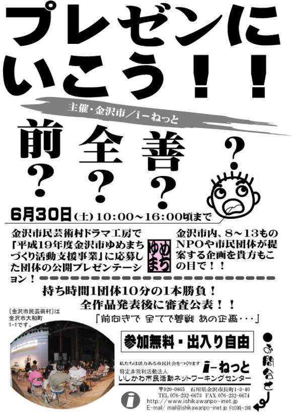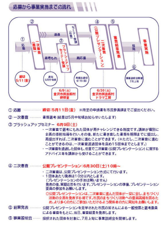 団体、落選10団体中、8団体が6月9日(土)に金沢市民芸術村・研修室で開催