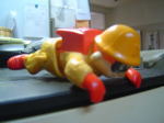 30日公開プレゼンの進行シュミレーションも終わり、当日の支払い関係で銀行へ行ったり、審査関係の書類、当日配布の資料、名札、等など全ての梱包までたどりつきました。何しろ当日は仕込が6時から始まるので、会場責任者になっている立場としては、社長出勤が出来ないので、今日から早起きの練習に入りました。11時消灯、5時起床・・。う〜ん。一日もやけてます。もう少し早く消灯して明日の様子をみませう。暑いので初クーラーもしました。そんな訳でシリーズ最終回は、どうやら2000年のマクドナルドの景品のようです。腰を振りながらホフク前進でここまでたどり着きました。あんまり近いとピントが合いませんね。拙者、へたみたい・・・。