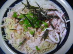 今日はなんだかあっちぃですね。しかもムシムシしてますが、そんな事は無視して、あれやらこれやら細かい事務処理の後、今夜の理事会を迎えます。中心は30日の公開プレゼンです。やっと当日プログラムをエントリー団体へ発送し、中味をテキストファイルに入れて、整えてから、一気にWebに貼りこみ!早い!であります!こちらにはエントリー団体が発表する企画タイトルも入れてありますので、どうぞご覧になって、金沢市の地域団体・市民団体の創意を感じとっていただければと思います。昨晩帰宅は10時近かったのですが、空腹と創作欲に駆り立てられ、残っていた1玉の「稲庭うどん」で二人前の、題して「いなにわ・しゃぶ肉ぶっかけ麺」です。冷凍のお肉、いかを解凍後にボイルして、トマト、ネギ、のり、ショウガを乗せて、たれをぶっかけるだけ。遅い食事にはなかなかですよ。