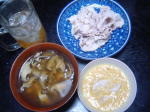 _)>。のっけから「今日のお料理」。擦った「とろろ」に黄身、カツオだし、醤油少々、わさびを入れて混ぜたもの(右下)に、冷しゃぶした豚肉をからめていただきます。かなりの独創料理なので「とろろしゃぶ膳」と命名しましたぁ!!明日はお休みしますぅ<(_