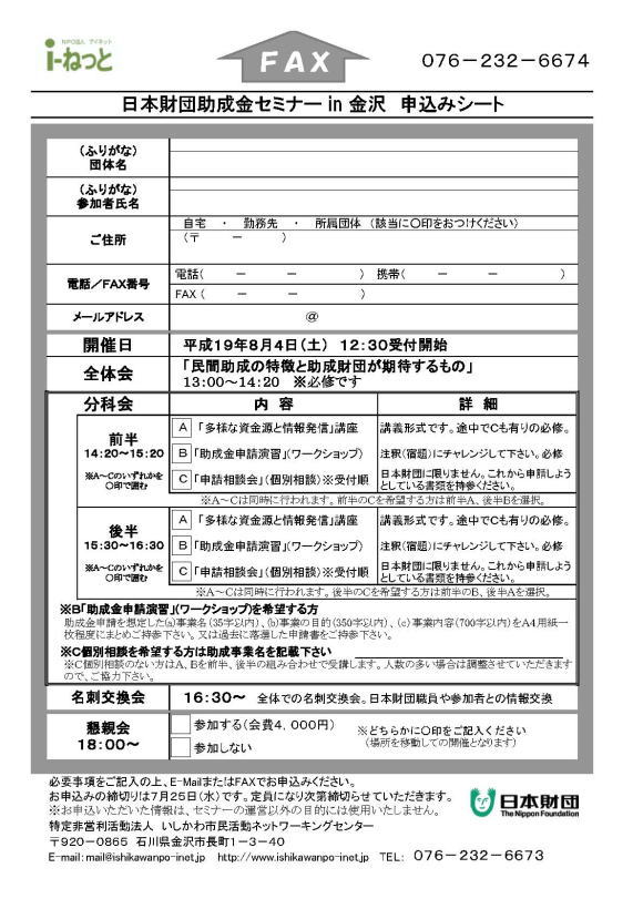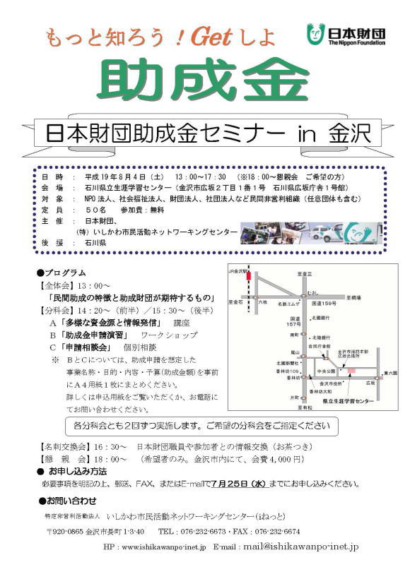 主 催:日本財団/(特)いしかわ市民活動ネットワーキングセンター