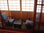 「文化活動で社会貢献」この頃そんなテーマと出会います。エイブルアートや市民参加型の公演活動は、不特定多数に対し開かれたイメージがするので、障害者理解やまちづくりの手法として理解できるように思います。伝統保存はどうでしょう。積極的な意味で、消滅する文化を保存するということは、極めて公益性は高いのですが、保存する価値への評価は個々の想いによって多様です。本来スポーツも含め人々へ何らかの感動を与え、社会や国家に寄与していた文化・芸能の世界が、きっと趣味の世界へと拡散する方向へ、近代が発達したからでしょうか。「お声があって、役に立つのが、プロの技。気高い使命も、呼ばれてなんぼ」。表現者の社会貢献度の悲しいところです。今日予定されていた第4回理事会は欠席者が立て続けに出て、中止となってしまいました。冷たい雨の寒さと合わせ、気持ちまでが冷えての帰宅です。写真は3連貼り最後の旧作・和風旅館2階の張り出しです。