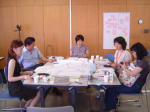 27日(日)28日(月)と大阪に行ってきました。何をしに行ったかはトップページ「NPOニュース」に更新しましたので、そちらをご覧ください。で、大阪は暑い!夜の梅田は人が多い!大阪駅はよくわからん!の3点セットでした。会場の大阪NPOプラザは昨年1度行ったことがあるので、大体の距離感はあったのですが、大阪駅が複雑で東京のように標識を読み取れず、「人に尋ねて何千里」でした。二日目は昼食を会場の近所に求め、小さな和食の定食屋さんに数人で入りました。なんと生卵食べ放題でテーブルの上に積んであるのです。お刺身定食を注文し、久しぶりに「お玉かけご飯」を生卵2つ分頂き、とてもリッチな昼食となりました。これまでの最高は、味噌汁に入れた3ヶだったそうです。ちなみにダイエット中の日本NPOセンター事務局長の田尻さんは、つつましくサバ焼き定食。同センターの新田さんは、親子どんぶりに、お玉かけをしようとしましが、止めました。写真は私たちのワークチームです。右から秋田の高杉さん、大阪の水谷さん、静岡の磯谷さん、奈良の仲川さん、そして金沢でもお馴染み福岡の古賀さんです。こちらもご覧ください。