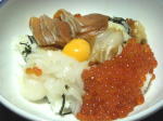 仕事始めを役所で過ごすのは初めてです。午前中、市長挨拶に訪れた町連のお偉い方々を帰りにゲットして、「町会改革ハンドブック(?)」の直接プレゼンに成功。続いて相談窓口で仕事をするものの、いやはや、新年あいさつの方々であっちこっち人だらけの大移動です。相談窓口は通路脇のカウンターに設置されているので、声をかけられる方々へ、腰を上げてカウンター越しにぺこぺこ状態なのでありますぅ〜。そういえば朝の市長挨拶は庁内放送で流れてました。後で知ったのですが、21年度は地域で活動する学生達を支援する条例づくりに着手するのだと、新年の抱負を語ったそうで、早速、新聞記者が取材にきてました。もちろん担当部局としては「はい。市長のお気持ちのようです。すべてはこれからです。」と、答えていましたが、夕刊によると日本にはまだないというこの条例。21年度も騒がしくなりそうですねぇ。さて、3日は能登丼に負けない贅沢丼を作りました。ほとんど解凍食材ですが、わずかなご飯の上に、きざみノリ、長いも、マグロ漬け、イカ刺し、ほたて、そしてたっぷりのいくらと、最後に黄卵をのっけた「北海の幸丼」でありますぅぅぅ\(~o~)/