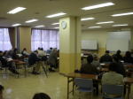 午後から(社)石川県雇用支援協会の仕事で団塊世代のセカンドライフのためのボランティア講座で小松市に行ってきました。昼の電車から、なんやら特急に遅れのアナウンスがあり、休講してはいけないと思い、ひとつ早い普通列車で小松入り。傘が壊れるほどのひどい突風と雨です。3時に終わり、小松駅で37分発の電車待ちの中、「石動駅でドラム缶と列車が衝突のため、運行の見通しはたってません・・・」一時、小松空港へバスで行って空港バスで金沢へ戻ることも考えましたが、リスクを考えて、電車が動くまで駅で待機。かくして1時間遅れで事務所に戻ったのが5時30分でした。1時間30分の講義に、半日仕事となりました。明日は駅西で「協働フォーラム2008」があります。みなさん来てくださいね。写真は小松公会堂の一室での今日の受講者風景で〜す。