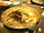 もう新年度も2日目になってしまいますた。東京から戻っての一日市役所で、相談の合間にi−ねっと決算に集中しての夜の歓送迎会。職員さん2名の出入りなどで、組織恒例の儀式を見せてもらいますた。ほんでもって、二次会で乾電池使い果したって感じで、いささかバテバテで、もたもたの一日事務局。灯油ちょこっとが心細く、この寒さを恨みながら、電源のON、OFFが続きます。トップページの助成金情報の更新やら、東京でのイベントを「NPOニュース」欄にちょこっと更新したり、おみやげ書類を読んだりと、力抜け〜って感じ〜。ちょこっと早く帰ってぐっすり眠ることにすます〜。さて、写真は東京ネタを3回位連ちゃんします。まずはイベントが終わってから食事をした、新宿の韓国居酒屋の料理です。「カムジャタン」という豚の背骨(真ん中の黒いの)を煮込む鍋料理です。味噌味でもって、これが辛い〜!煮込が進むと、どろどろの激辛豚骨スープになっちゃって、初体験ですたぁ〜!!