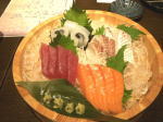 4月11日は「よいワン子」の日。って、ふた桁は辛いなぁ〜。昨日の4月10日は「よい戸の日」というのがほんまにあって、NPOなどへサッシ戸などを無料でメーカーさんが修理に回ったとか。びっくり!今夜は町会の総会があって、きちんとした総会進行を伝えるレジメをつくりました。その町会のお話です。我が110世帯の町会の方が、道を一本隔てて、隣の町会へ今度引っ越しされるそうで、大好きな我が町会に、そのまま残ることはできないものかと相談を受けました。そこで道一本なので、先方の町会長さんに了解が取れないか、朝電話をしました。もっとも電話番号を町会長名簿で調べた際に、お隣の町会はとても小さな30世帯。町会長さんはびっくりした様子で「新築の家に人が入って、やっと一世帯増えると、みんなが新しい所帯が引っ越してくるのを楽しみにしてたのに。。。」そうですよね。旧市街地はどんどん空家が増えているんですから。。で、無理押しはとてもできませんでした。明日は午後から海寄りの知らない町の総会に呼ばれて出かけます。どこのバス亭が近いのやら。。不安だなぁ〜。さて、写真は昨晩の宴に出た「お刺身」です。この店はサーモンが特別に美味しいぃぃ!
