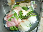 梅雨の気配が近づく感のある週末の金曜日。今日から金沢は「百万石まつり」とか。初日の夜に市内の子ども会が提灯を持って練り歩くという、日露戦争の勝利を祝った「提灯行列」が今年もありまする。その時間に今年は「反天皇制」の映画上映会が、子ども行列の通過する文化ホールで開催。それだけなら、なんてことないですが、噂では、全国の右翼の宣伝カーが会場周辺に集結するってもんだから、(ホントかよ?)こりゃ大騒ぎだわさ!個人的にこの映画監督は民族派なのでないかと思っているわけだから、上映日をずらしたくないと言い張る根拠は、やっぱ「戦勝勝利の提灯行列」と「天皇制」をぶっつけたい意図があるのでは?な〜んて面白がってる野次馬だよ、こりゃ!言ってしまえば身も蓋もないけど、ドイツやイタリアと違って、日本のあいまいもこもこの戦後処理が、やっぱ永久に悪いっぺよ!という訳で先週末に食べた、おなじみ「なんとこれで千円お刺身」っす〜。