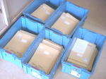 梅雨はいずこへ?の真夏日。昨晩の美味しかったお酒もなんのその、朝のハヨから発送マシーンの出撃!200枚を1組に4回と、残りは部数の多い封筒が混じった55通(一番右のカゴ)で合計855通ですた。郵政民営化の影響か、郵便扱いで、宅急便屋さんが代行配達するという「ゆうメール」なんです。郵便物入れのカゴを宅急便屋さんが、用意してくれますた。まず1組目は5通一度に開封部を折り込み、横に並べて糊しろのみ並べます。ステック糊太めを一気に塗りたくり、次に糊しろを手際よく折って貼り付け、接着部をギューギューしてからカゴにポイ!という段取り。やがて開封部折り限界の10通まで一度にできるようになりますたが、最初は試行錯誤で、封筒やカゴの位置調整などもあり、32分かかりますた。次の2組目は慣れてきて5分短縮の27分。目指せ20分!と自分で目標を定め、3組目の200通から戦いが始まりますた。3組目が4分短縮の23分。最後の4組目は残念!2分短縮の21分!20分にわずか届かず無念なのでありますたが、単純事務作業でも、目標を持つと楽しいっすよ〜(^^)/~~~