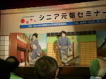 昨日は更新できず、すんませんでした<(_ _)>。昼から市役所公用車(空中分解寸前のバン)で、職員の方と津幡町で開催の「シニア元気セミナー」に行って、戻って相談業務終了後、市民参画課の「暑気払い」に参加し、ビールをしこたま飲んで帰宅しちまいますた。津幡町のセミナーは石川県内の三市三町の男女共同参画課が中央広域圏で作っている協議会が持ち回りで開催するもの。地元ではCMでブレク中の大衆演劇集団「御供田幸子一座」のコテコテ歌謡ショー(写真)とコントで1時間使い、残り1時間で、60人ほどがグループに分かれ地域参加を考えるワークショップを行うという、前代未聞のこの企画。不安が的中し、ワークネタのコントは、最後にほんの10分だけ!使いようがなく、休憩の10分でお題を作って、なんとか乗り切りますた。今日は金沢ボランティア大学校第16期生120名程に、90分のマシンガントークして、さっき戻りますた。こちらもコテコテのボランティア芸人でありますぇ〜。