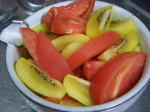 自転車でさわやか出勤。デパ地下で弁当買って早速9月セミナーの仕込みです。日曜は企画思考に最適です。あれこれ関係書物も読めるし、拘束時間もなく、仕事出来れば帰るぞ〜スタンスなんで、楽しく集中できます。という訳で、関係者お願いも送信でき無事終了。でもちと、日曜にしては遅い時間じゃ!明日の朝は日本の政局が少し変わる記念日となるのかどうだか?奈良にも東京にも選挙権の無い者としては、見物しかないのじゃが。。。。さて、ちょいと色取りのない写真が続いたので、赤のトマトと黄色のキウイは美しくはないのでせうか?