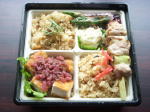 _)>。という訳で写真はデパ地下弁当です。私を知ってる売り子のおばさんに声をかけられ、これに決めたらば「ありがとう〜」と言いながら、下のケースから焼き鳥1本(右のやつ)取り出して、お弁当に入れてくれますた!対面販売は良いですねぇ〜。