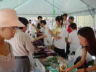 縁あって「時々スタッフ」の方が涌波農家で産直をしているというので、「梅ぼし」「梅みそ」「いちちくジャム」をメインに、梅シロップなど一杯100円の冷たいドリンクの他、取れたて枝豆、きゅりまで持ち込んでいただき、開始15分前には、なかなかのお店が完成した。